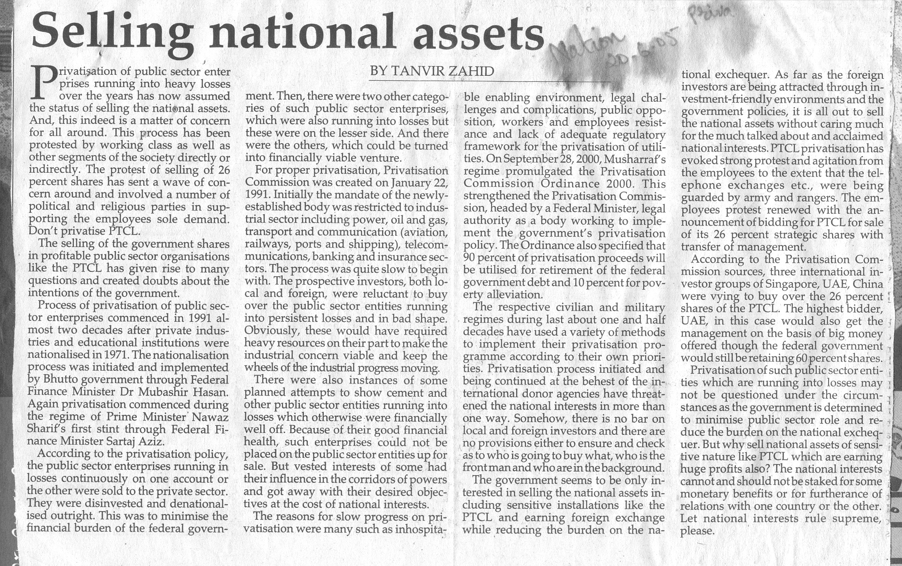 CLIPPIGN'S TOPICS\Pakistan Economy\Selling national assets,by Tanvir